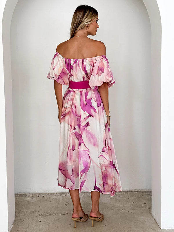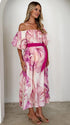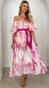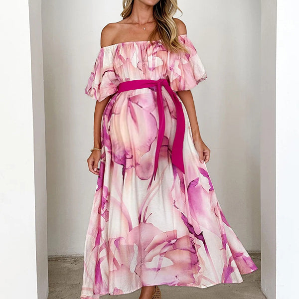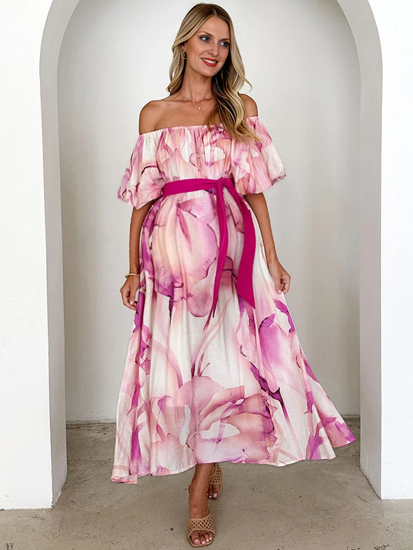 Chicnmom Vestidos largo Premamá tie-dye Cinturón Hombros descubiertos Rojo