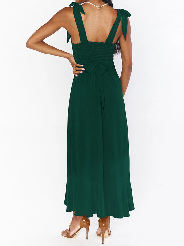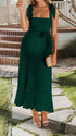 Chicnmom Vestidos largo Premamá Volantes Abertura Cinturón Verde Oscuro
