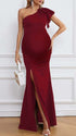 Chicnmom Vestidos largo Premamá Volantes Abertura Hombro caído Burdeos