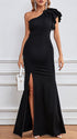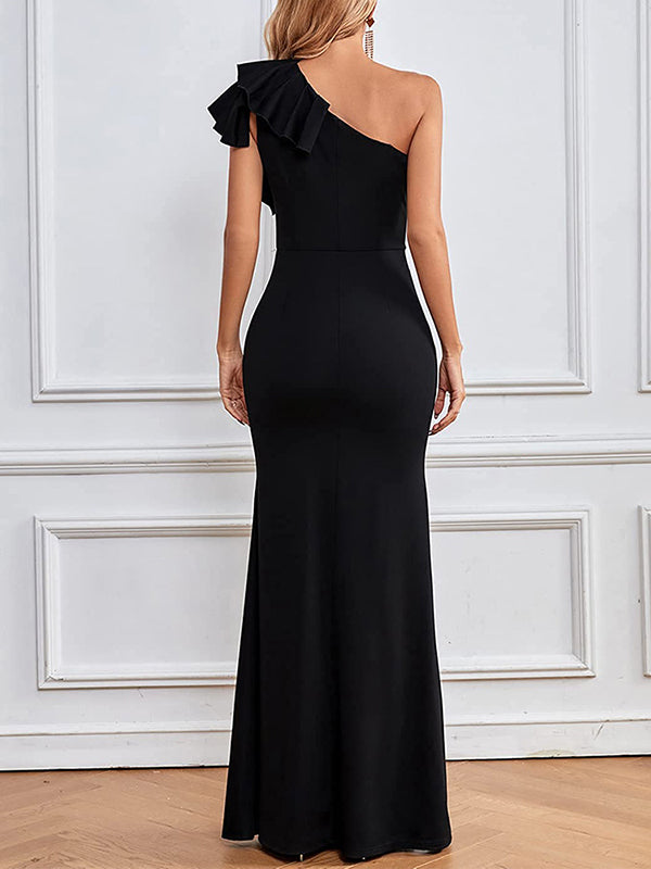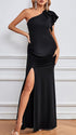 Chicnmom Vestidos largo Premamá Volantes Abertura Hombro caído Negro