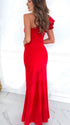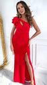 Chicnmom Vestidos largo Premamá Volantes Abertura Un hombro Rojo