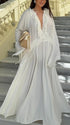 Chicnmom Vestidos largo Premamá Volantes Cinturón Fluidez Blanco