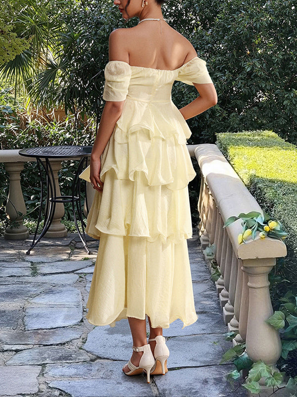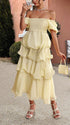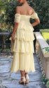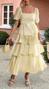 Chicnmom Vestidos largo Premamá Volantes Multicapa Espalda Descubierta Amarillo