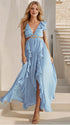 Chicnmom Vestidos largos de embarazo con volantes-Bleu