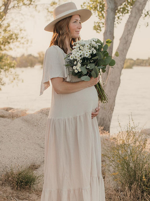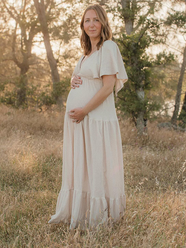 Chicnmom Vestidos Maxi de Premamá con Volantes y Espalda al Descubierto para Embarazadas Fotos Boho