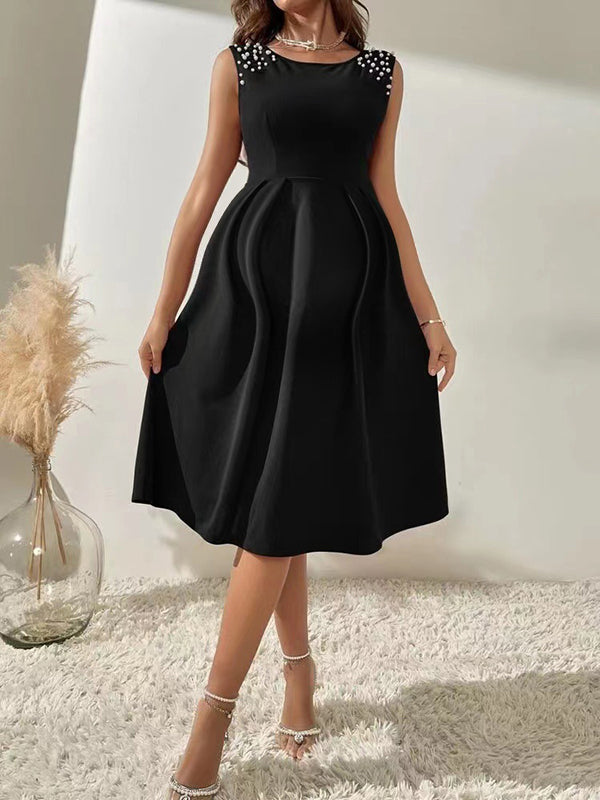 Chicnmom Vestidos midi Premamá Perlas Bajo Evasé Negro