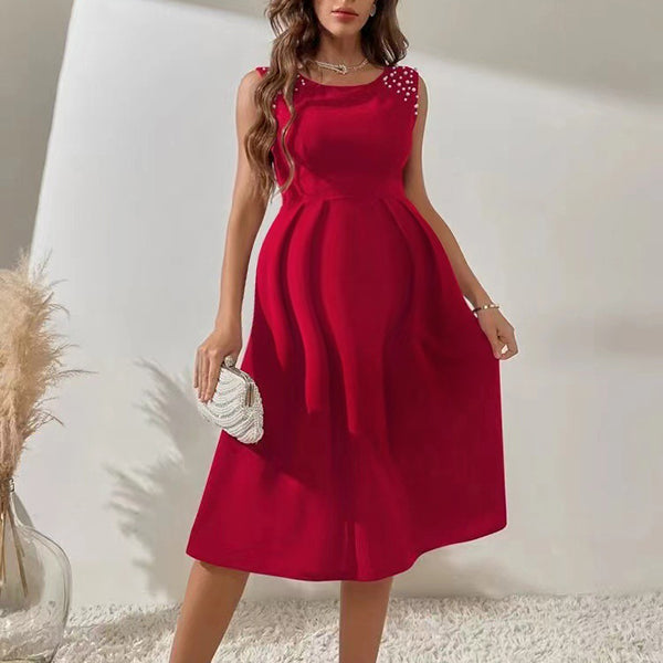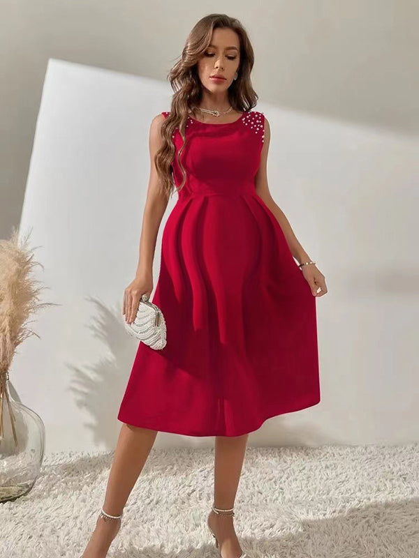 Chicnmom Vestidos midi Premamá Perlas Bajo Evasé Rojo