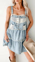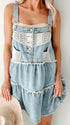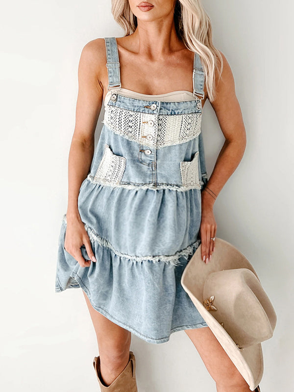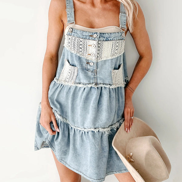 Chicnmom Vestidos mini Denim Premamá Encaje Volantes Azul Claro