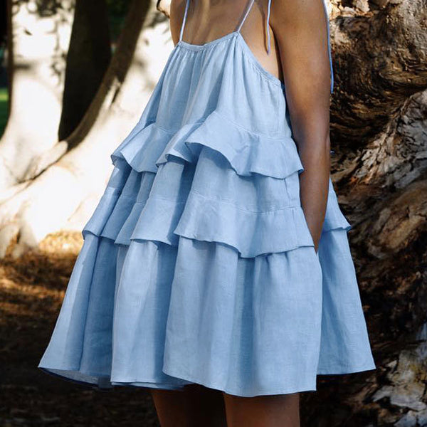 Chicnmom Vestidos mini Premamá Multicapa Espalda Descubierta Azul