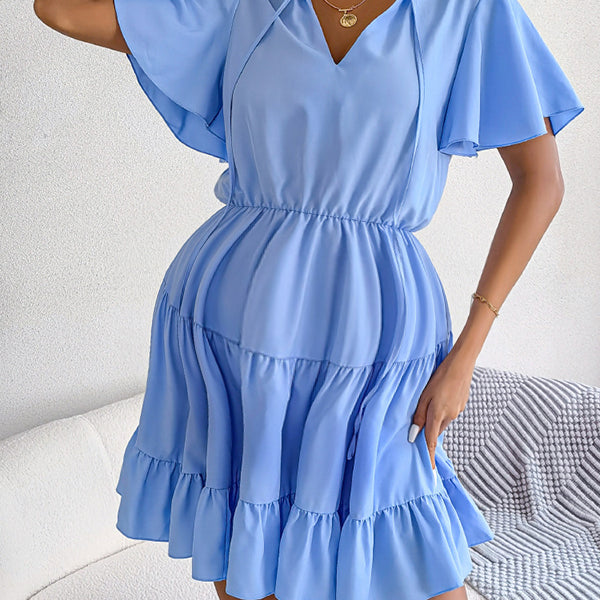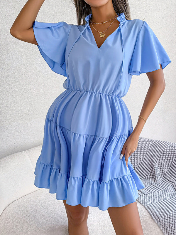 Chicnmom Vestidos mini Premamá Volantes Fluidez Trapecio Azul