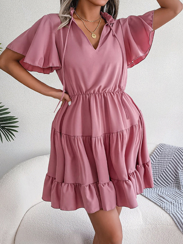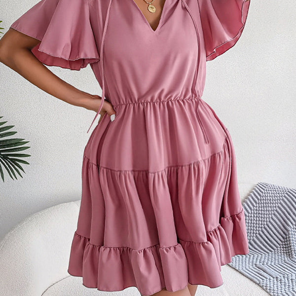 Chicnmom Vestidos mini Premamá Volantes Fluidez Trapecio Rosa