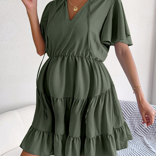 Chicnmom Vestidos mini Premamá Volantes Fluidez Trapecio Verde