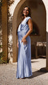 Chicnmom Vestidos para boda y fiesta premamá Escote en V profundo Azul